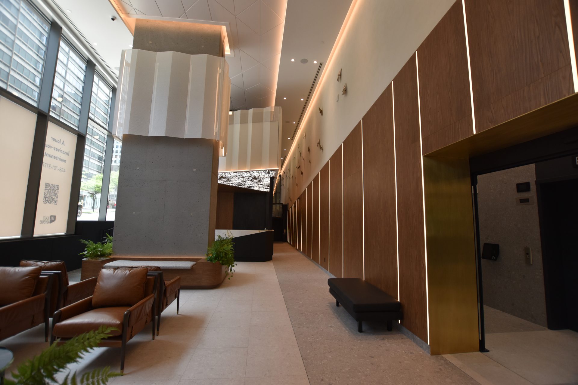 455 René Lévesque - Lounge : panneaux muraux / decorative wall panels