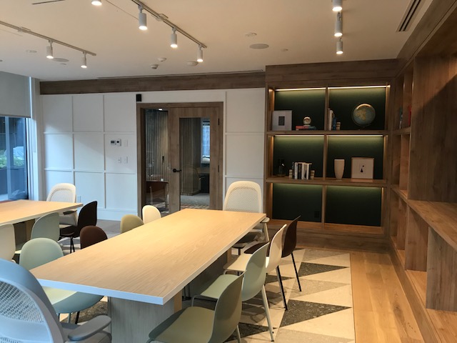 [FR] GAGNON & BRUNET AVOCATS : mobilier intégré, table de conférence, poutres et murs de verre noir / [EN] GAGNON & BRUNET AVOCATS : built-in cabinet and conference table, black glass featured wall, maple ceiling beam and post